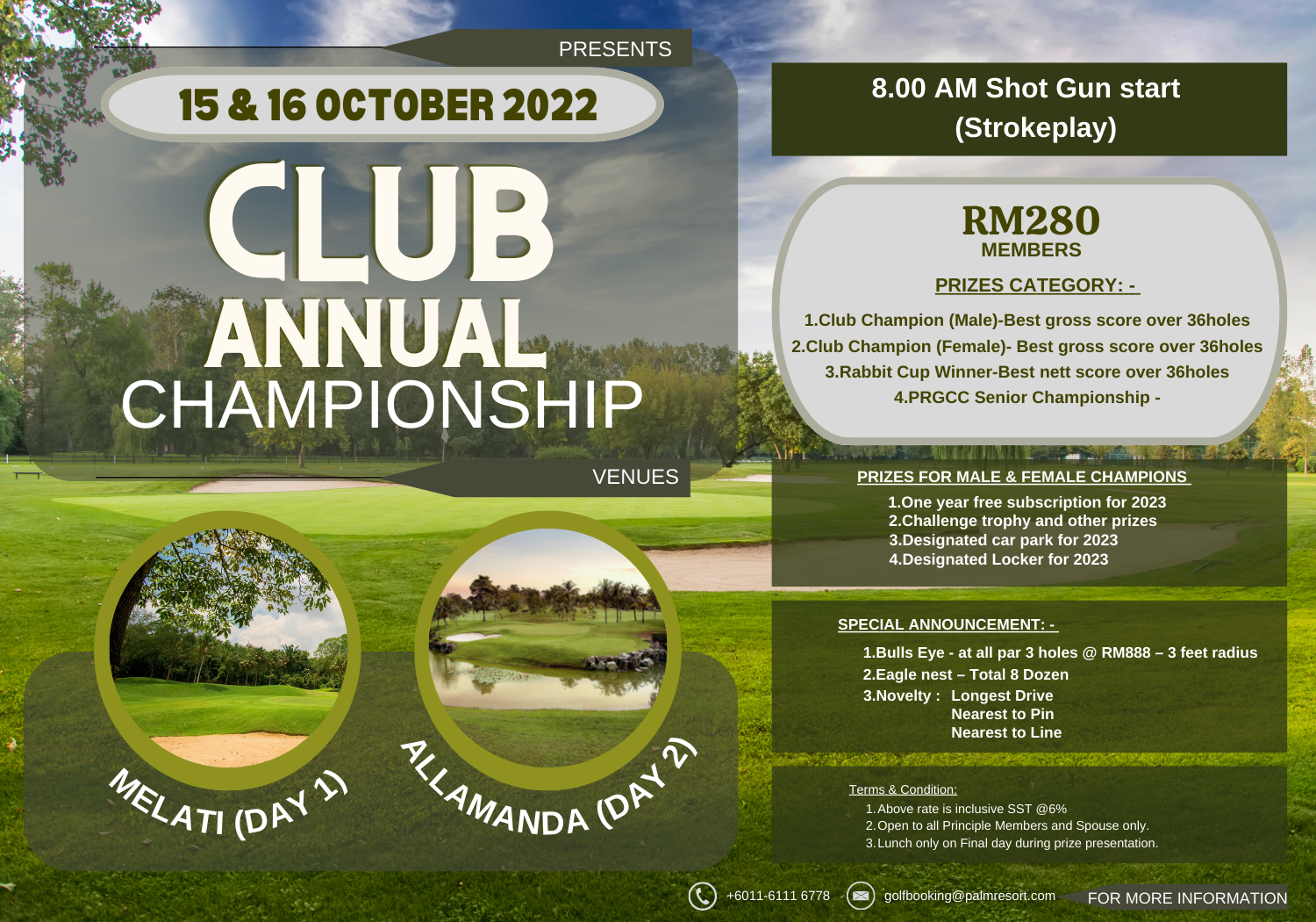 We look forward to welcoming you. Online Reservation - Johor Golf Country Club View Time Sheet Saturday AM Saturday PM Sunday AM Sunday PM TERMS CONDITIONS One member may book only one tee-off time.